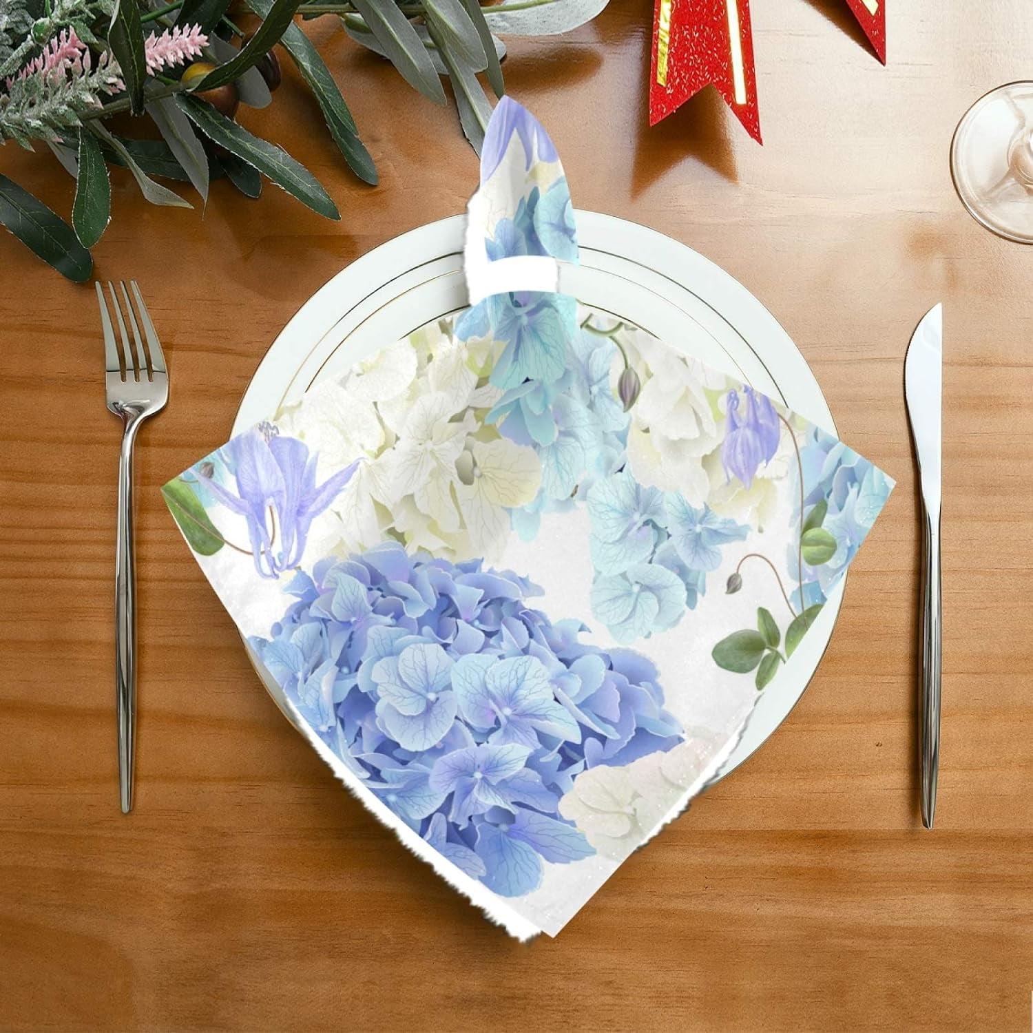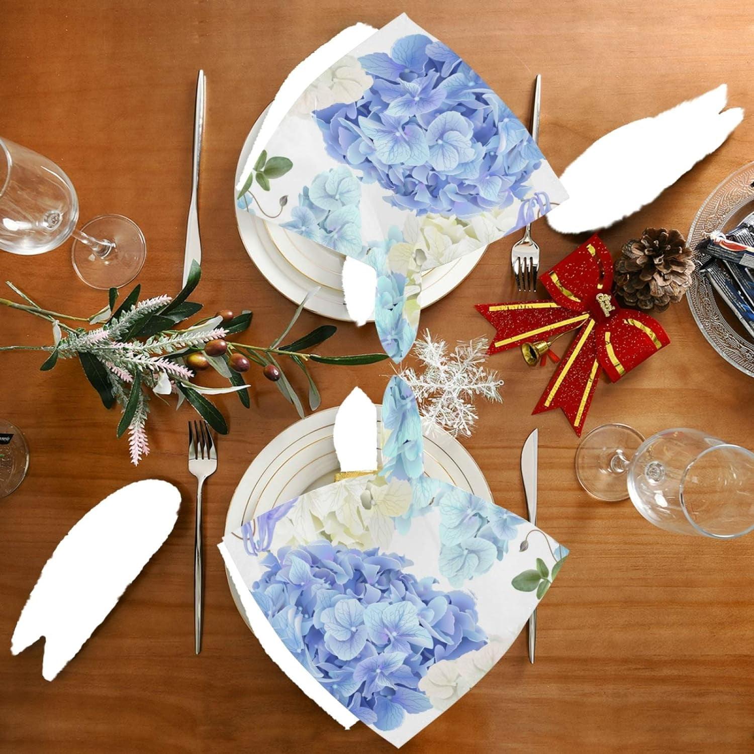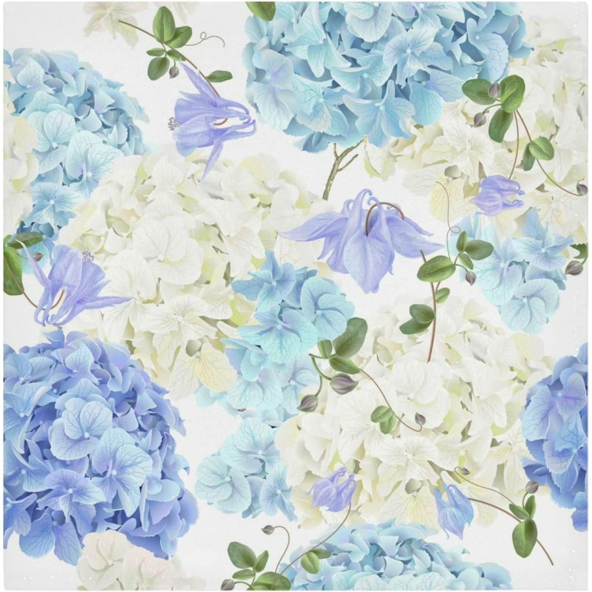 Wellsay Blue White Hydrangea Flowers Cloth Napkins 20 X 20 inch Polyester Washable Cocktail Napkins for Dinner Decorative - 1 Piece