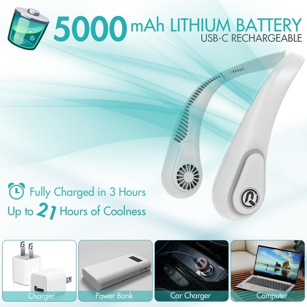 Hand-free 5000mAh Rechargeable Bladeless Neck Fan Angle Adjustable - White