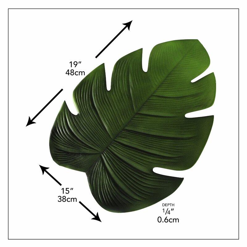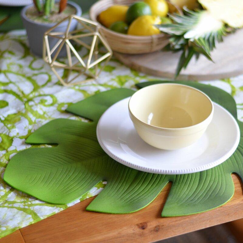 Add a touch of the tropics to your table the placemat. With rounded edges with that features realistic plant grooves and texture, each leaf mat is designed to lay flat. Showcase your dinner plates, napkins and accessories with a foundation layer of greenery that whispers tropical getaway.