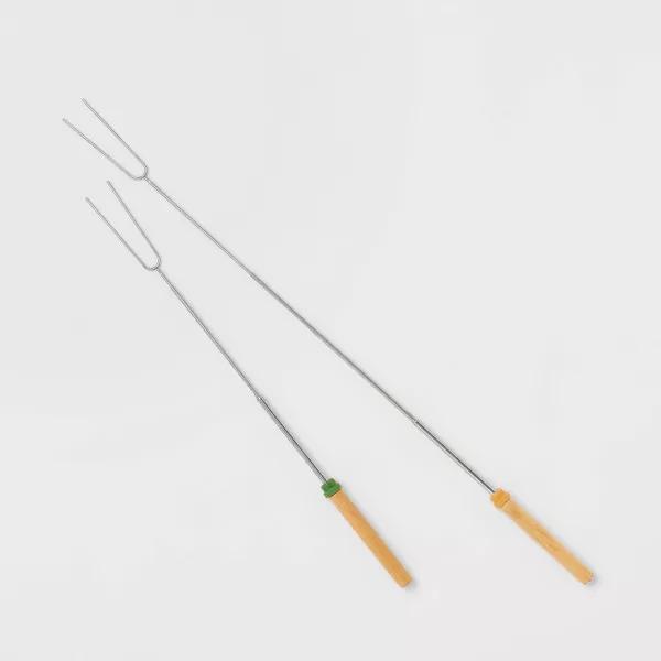 The 2-Count Extendable Camp Forks from Embark™ is a must-have hassle-free tool for the campsite or the backyard bonfire. The pack includes two camp forks with stainless steel construction and wooden handles for comfort.