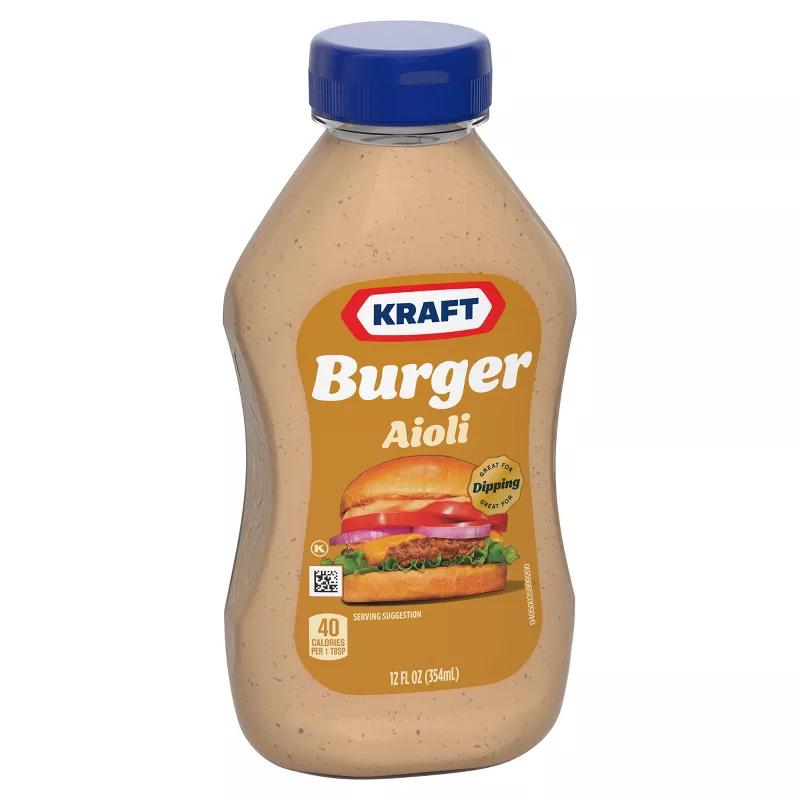 Creamy and oh-so flavorful, Kraft Burger Aioli is the perfect condiment to satisfy your burger cravings. Featuring a tasty blend of seasonings and ingredients, our aioli delivers delicious, tangy flavor in every bite. Dip, dunk or drizzle our aioli on anything that could be made better with bold flavor. The perfect complement for hamburgers, you can also try our sauce on turkey and chicken burgers, sandwiches and fries. Each 12 fluid ounce bottle contains about 23 servings. Dip into creamy flavor with Kraft Burger Aioli.