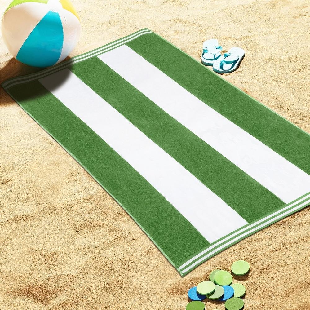 Superior Striped Large Oversized Cotton Beach Towel - Green