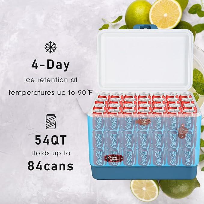 Creole Feast 54-Quart Portable Cooler, 4 Days Ice Retention Chest Box for Camping