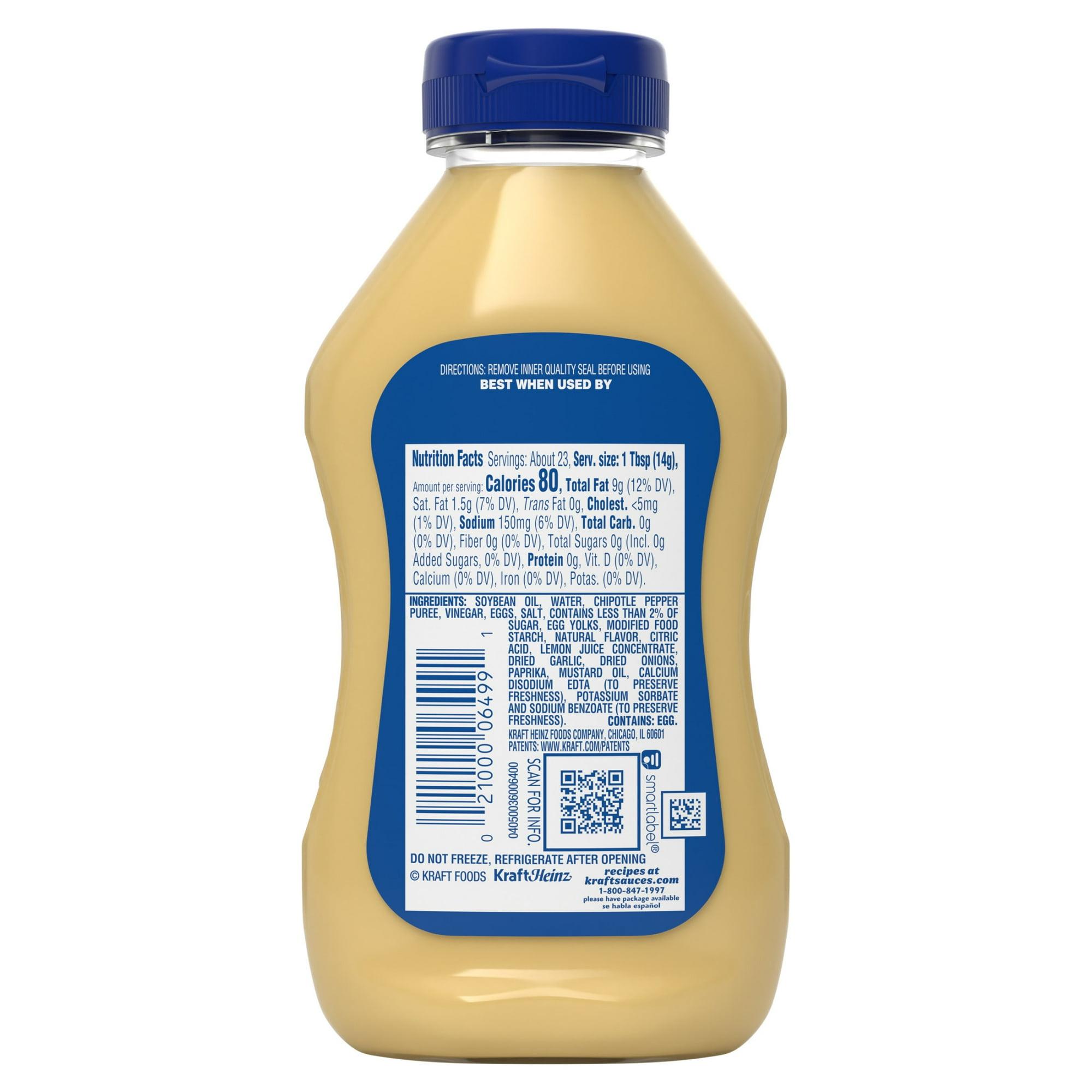 Creamy and oh-so flavorful, Kraft Chipotle Aioli is the perfect condiment to satisfy your spice craving. Featuring a tasty blend of seasonings and ingredients, our aioli delivers delicious chipotle flavor in every bite. Dip, dunk or drizzle our aioli on anything that could be made better with bold chipotle flavor. Try our sauce on onion rings, burgers, sandwiches, chicken, fries and veggies. Each 12 fluid ounce bottle contains about 23 servings. Dip into creamy flavor with Kraft Chipotle Aioli.