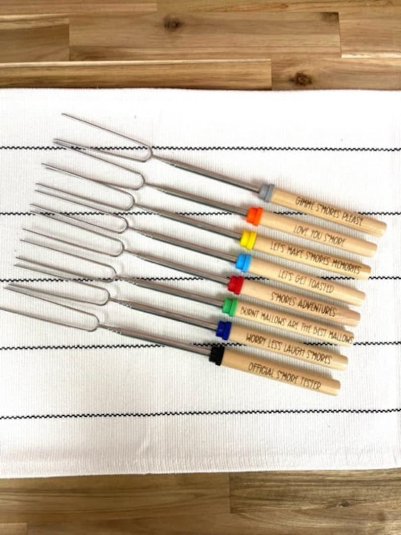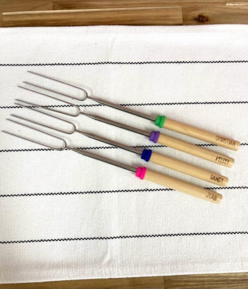 These collapsible marshmallow roasting sticks are perfect for any campfire occasion! Choose from one of our pre-designed sayings or customized with your names.