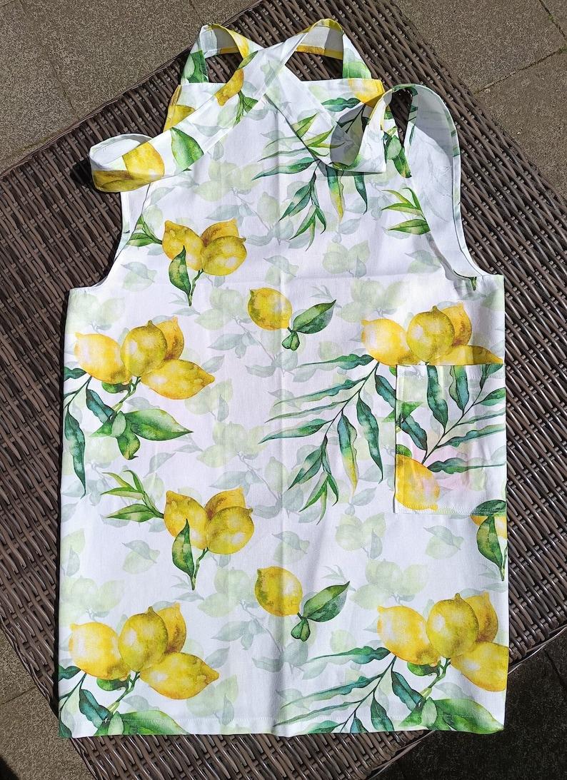 Beautiful kitchen Apron. Lemon motive. Colorful sweet motive. Lemon, sunny, fruity!. Stylish and functional "Japanese" full apron for men and women. Designed to have an unisex look and fit (from M to XL size).