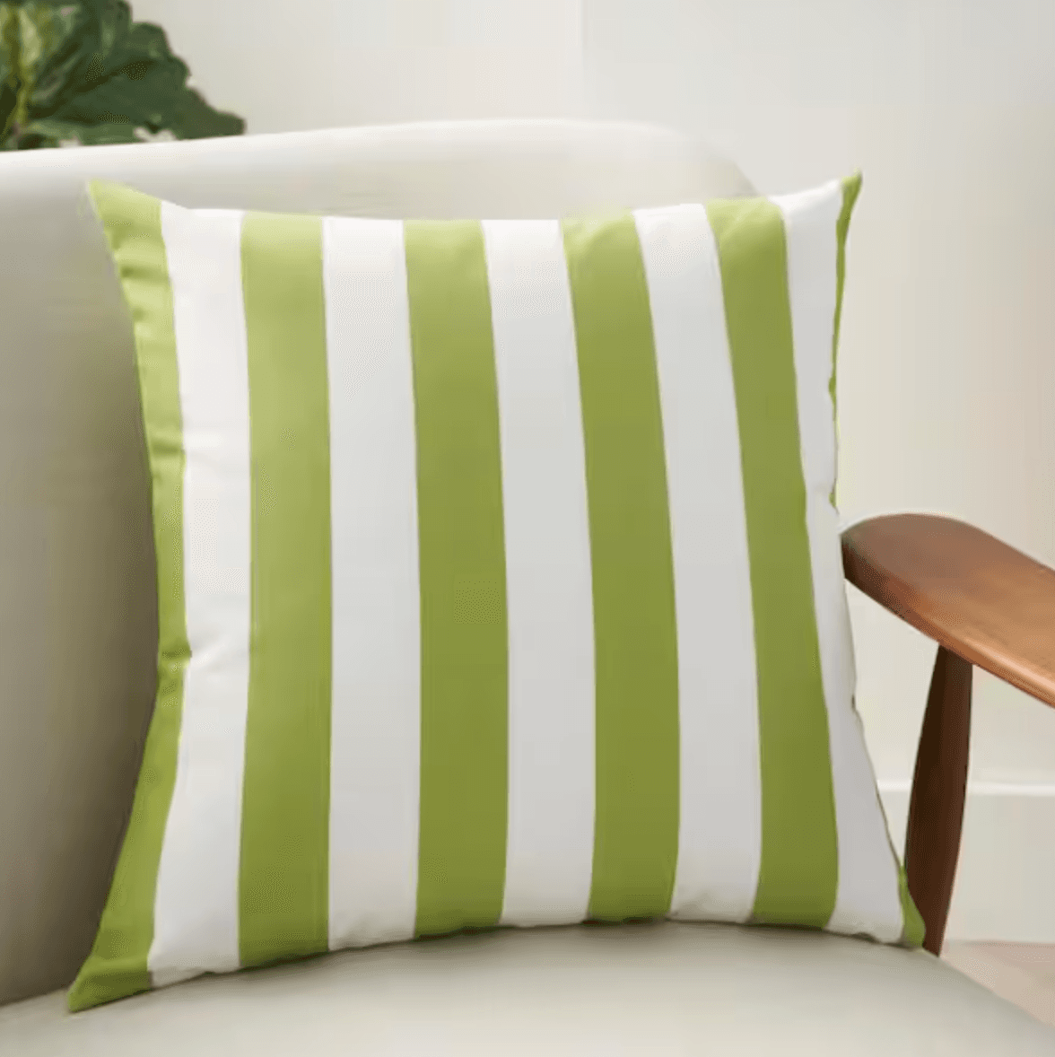 Green Striped 18 in. x 18 in. Indoor/Outdoor Throw Pillow