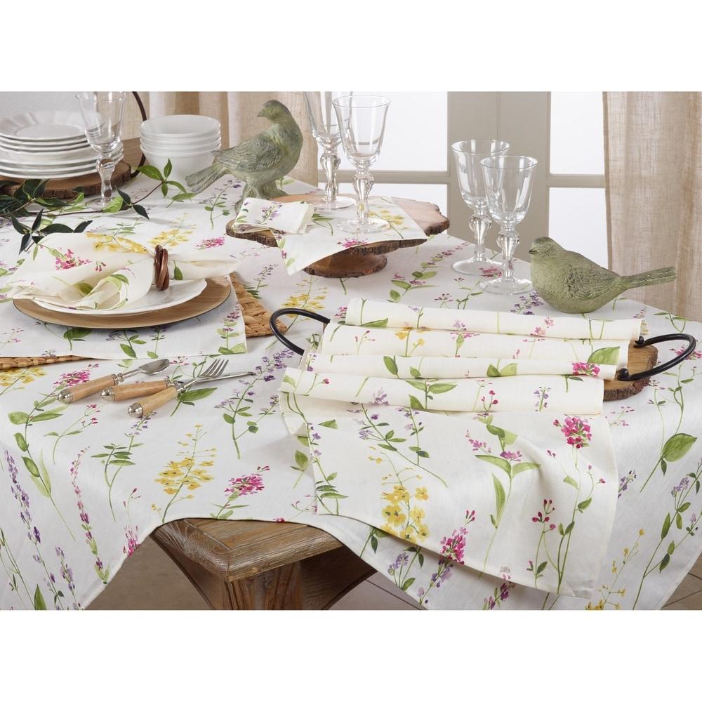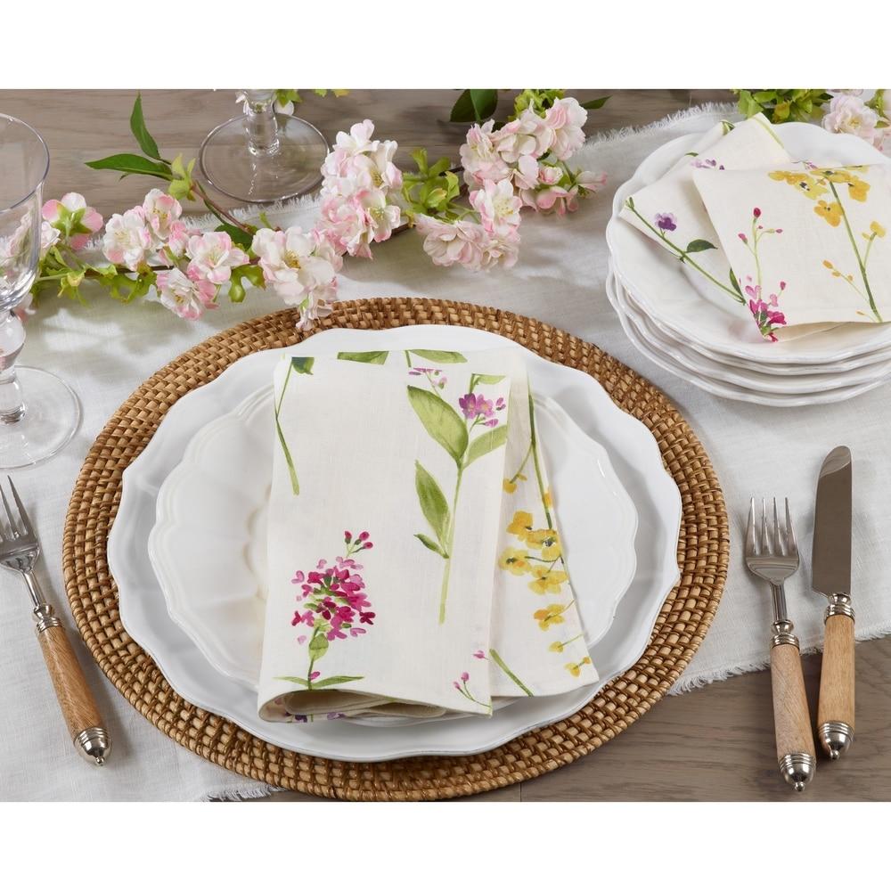 Linen Napkins With Floral Stem Design (Set of 4)