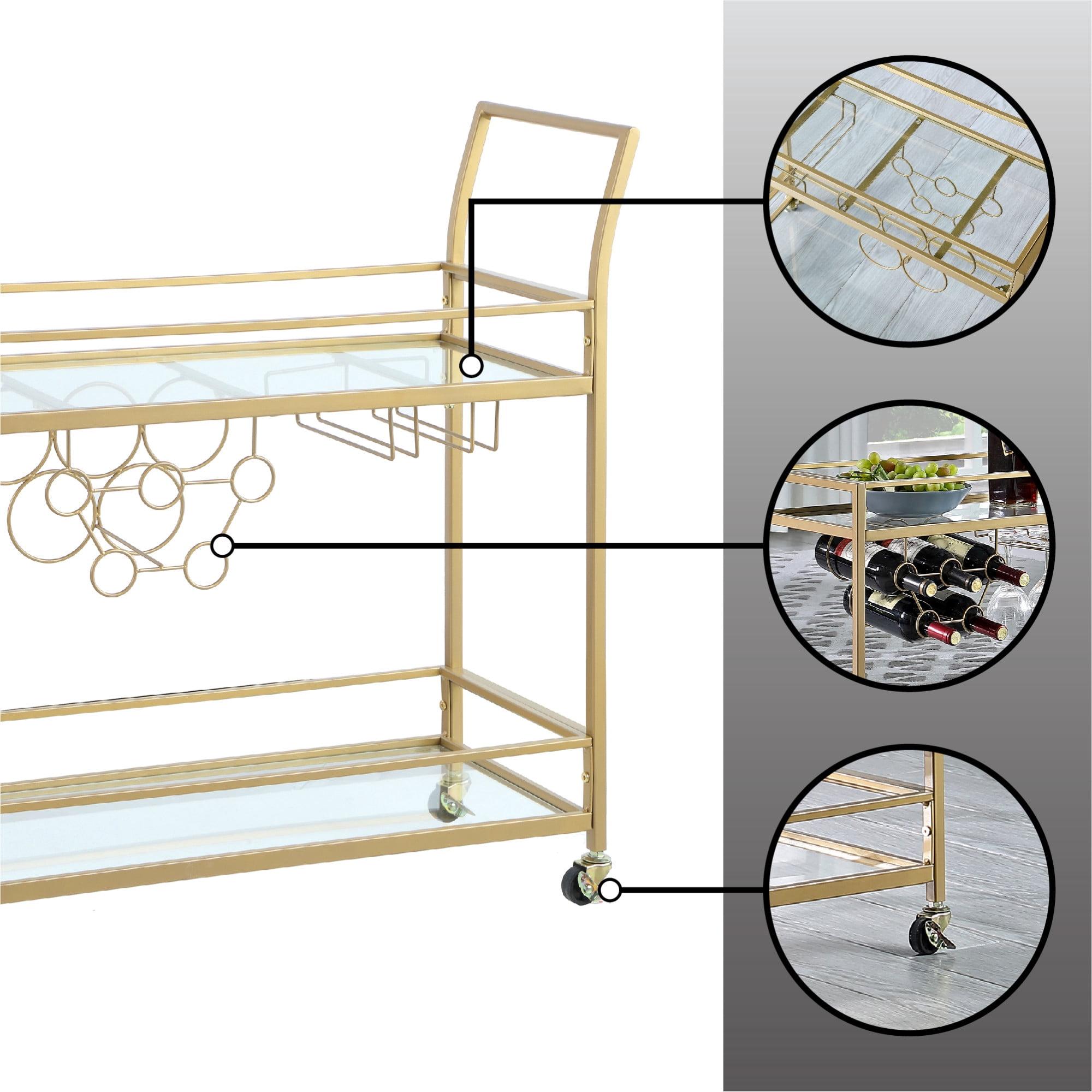 FirsTime & Co. Gold Francesca Bar Cart, Glam, Metal, 30 x 13 x 32.5 in