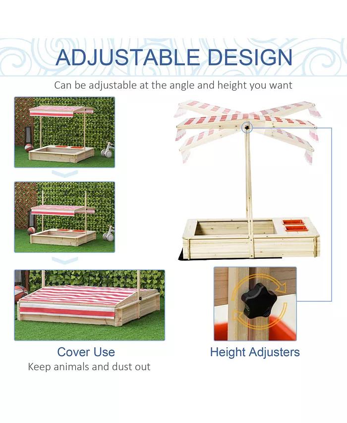 This kids sandbox features height adjusters on both sides of the canopy, which can hold the canopy firmly at the angle you want, without worrying that the wind will shake the tent.. With a weather-resistant cover, allow your children to enjoy the protection of the sun outdoors with this covered sandbox.