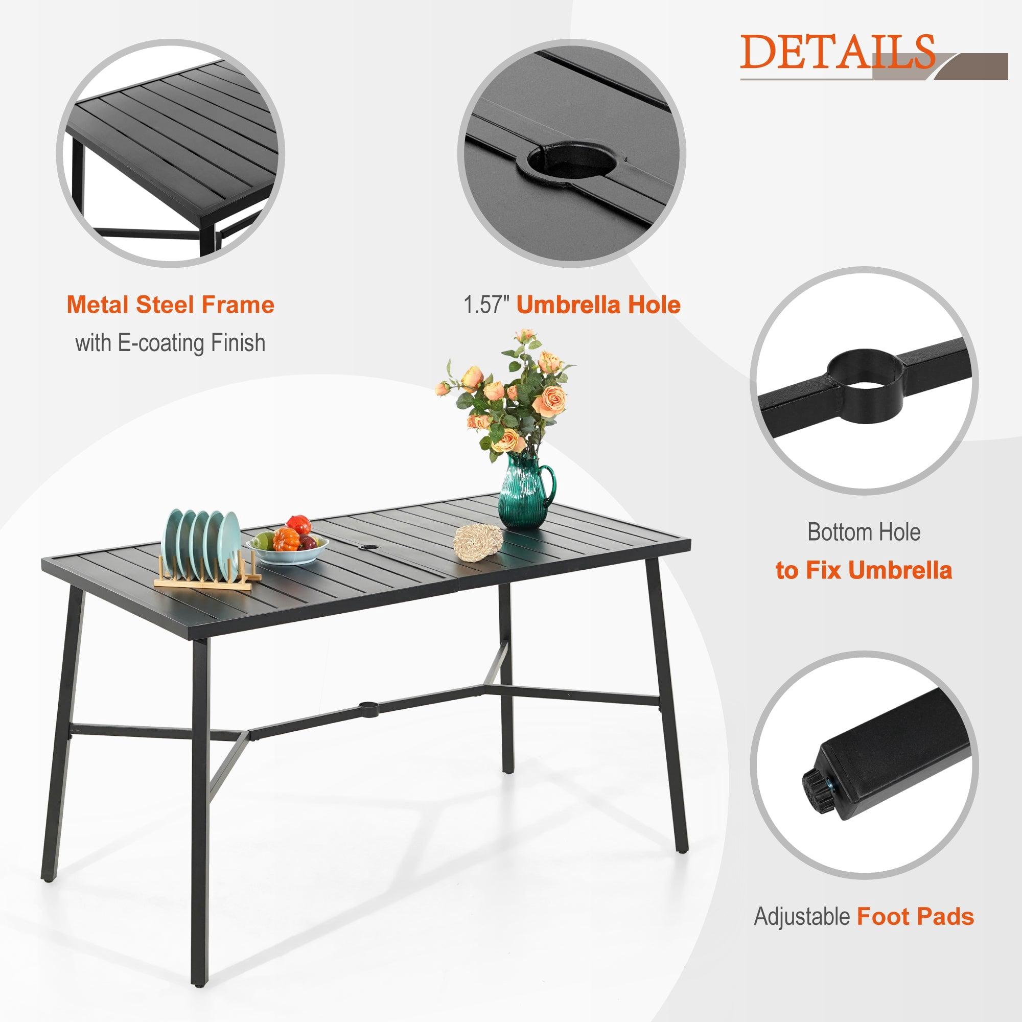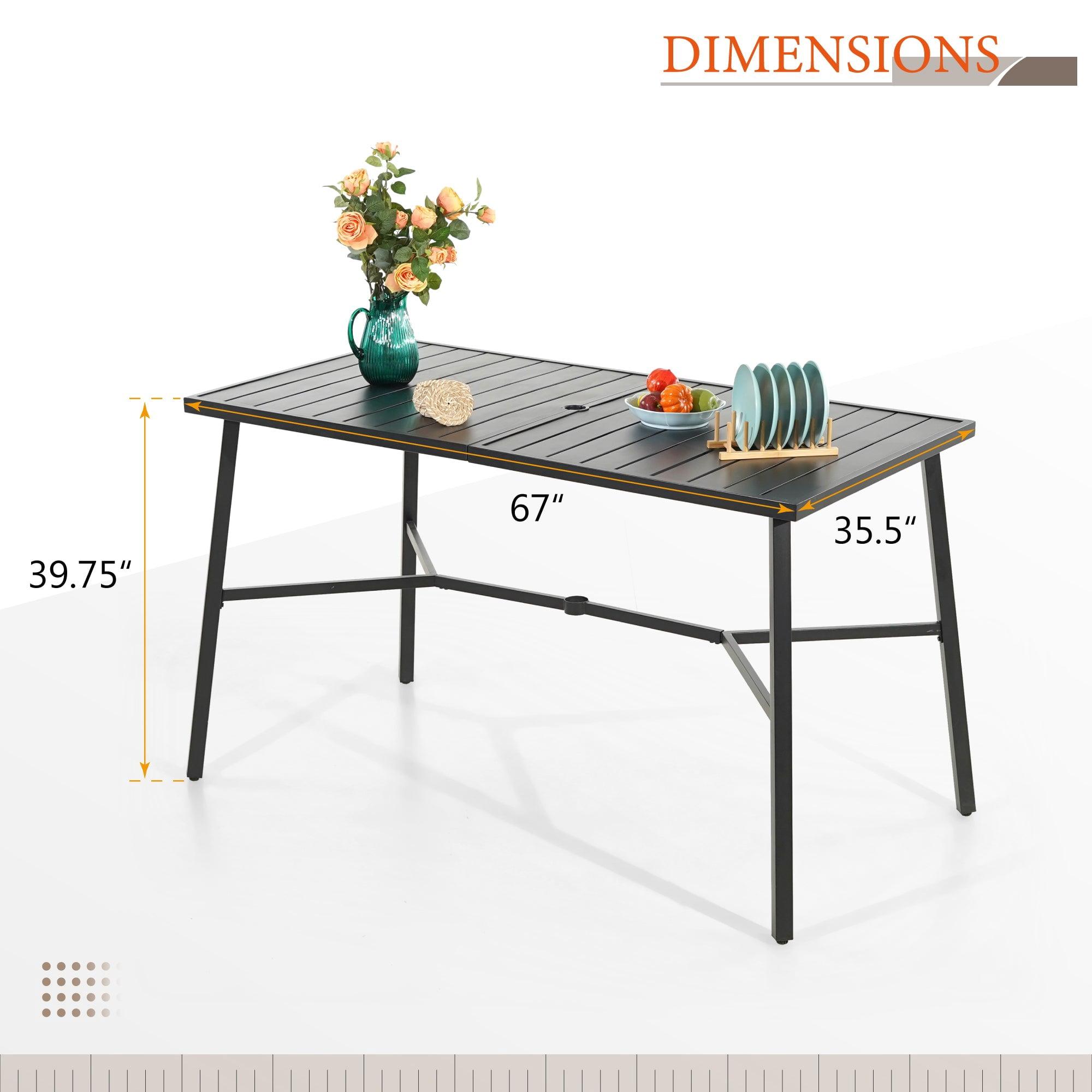 If you're looking for a patio high bar table to enjoy your relaxing and dining time with your family, this patio high bar table might just be the one for you. This patio high bar table is made of durable metal steel frame longevity with e-coating,rust resistant and weather resistant. Table Size: L67" x W35.5" x H39.75". Extra-large table top provide enough space for use. This bar height table will suit any occasions where you need a leisurely afternoon or a hot party. Simple yet modern design make it an excellent decor for your yard, garden, and poolside.