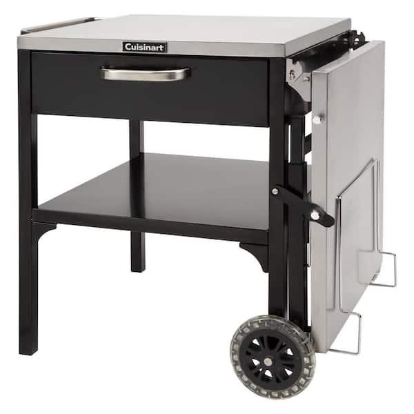 The Cuisinart prep 'n cook outdoor table and grill stand allows you to seamlessly move from food prep to cooking while using your portable grill. The Prep 'n Cook stainless steel table top measures 48" x 24".