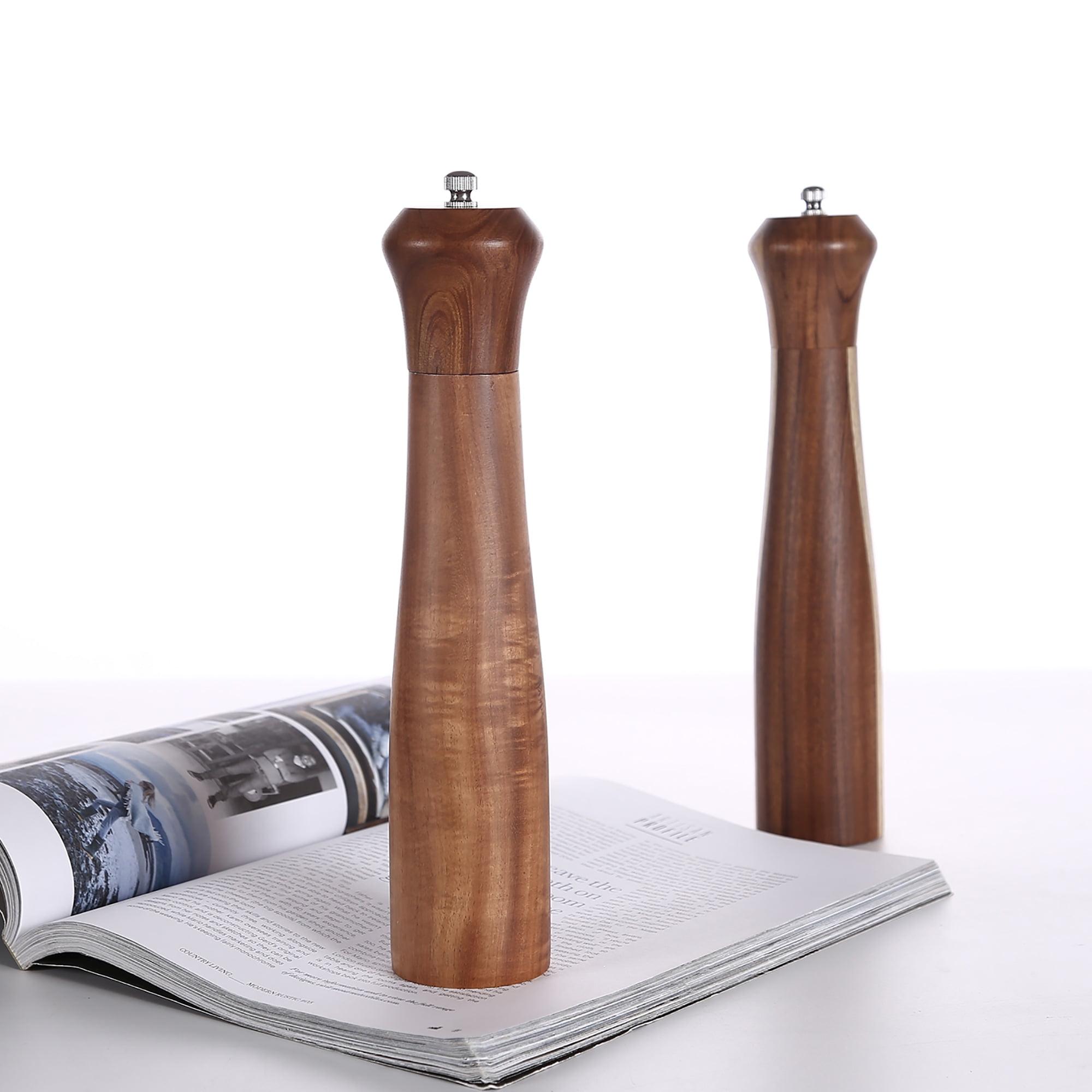 KKC Adjustable Pepper Mill Grinder, Large Manual Acacia Wood Pepper Mill, Refillable Mill,10in