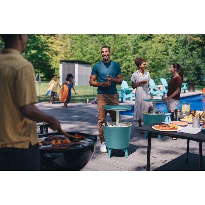 Keter 32 Qt. Cool Bar Cooler Outdoor Weather Resistant Patio Furniture 2 in 1 Side Table and Bar