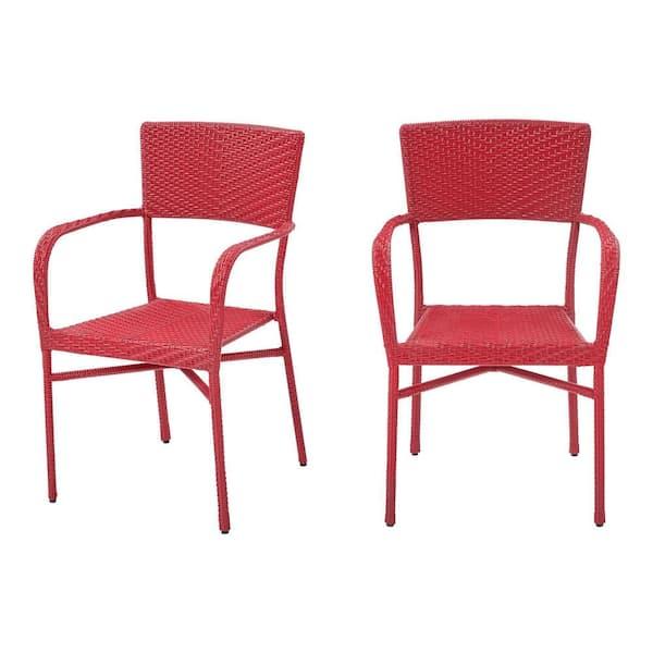 Emmet Chili Red Stackable Steel Frame Resin Wicker Outdoor Lounge Chair (2-Pack)