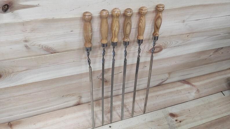 Stainless Steel Skewers 6pcs, Grilling Set, Grilling gift, Kebab skewers, Grilling tools, Hand forged, Cookware for camping, BBQ skewers set, Kebab set, BBQ grill accessories.