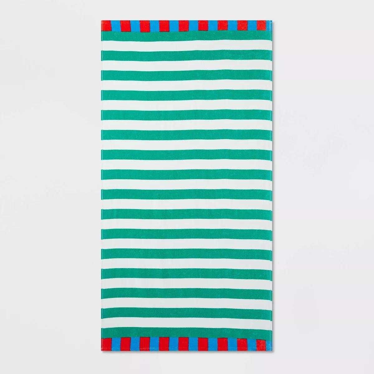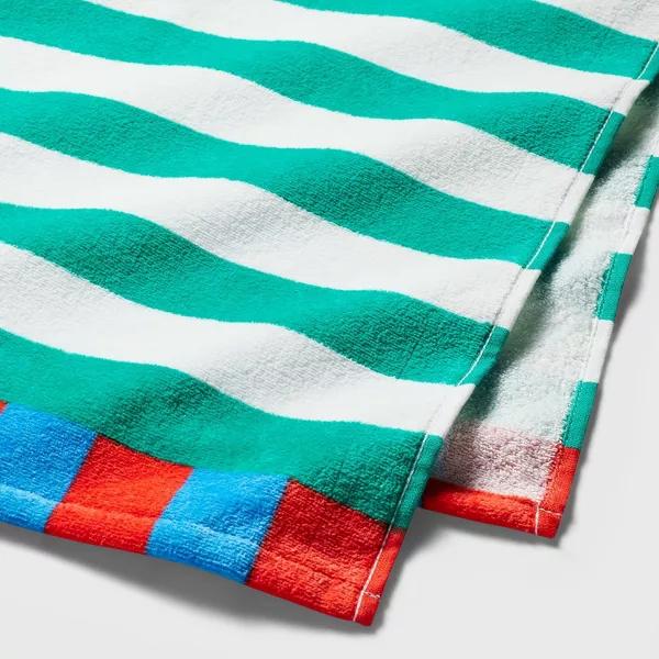 Add a splash of color to your beachside fun with this Striped Printed Beach Towel from Sun Squad™. Made of 100% velour cotton, this lightweight beach towel has a rectangular shape and is perfect for sunbathing on the beach or drying off at the pool.
