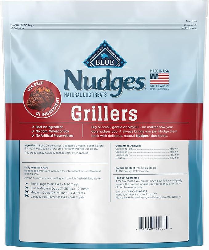 Blue Buffalo Nudges Grillers Natural Dog Treats with Real USA Beef, Made in the USA, Steak, 36-oz. Bag