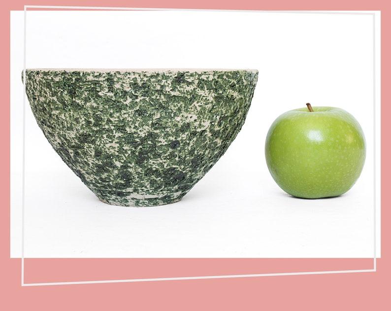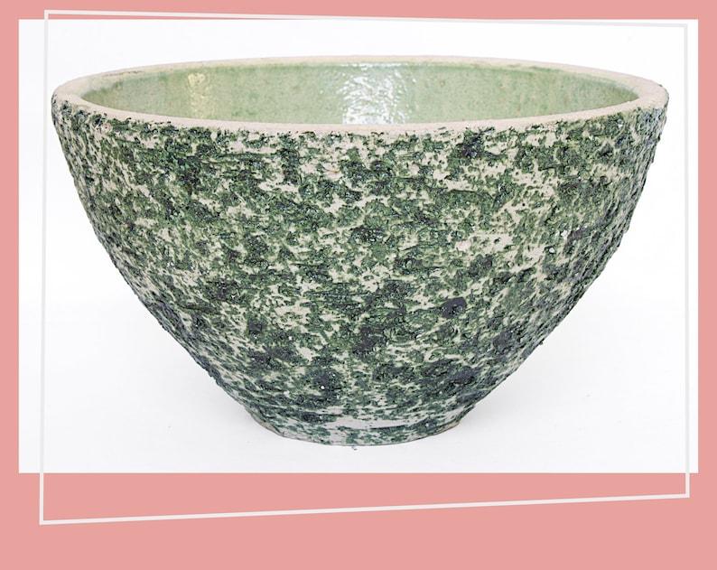 Very nice large brutalist decorative flower pot with green glazing inside. Very nice as a decoratieve piece. Sea grass green glazing inside. Can also be used as a decorative bowl.