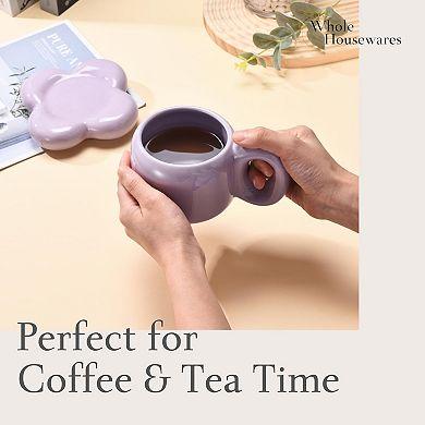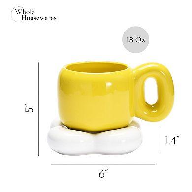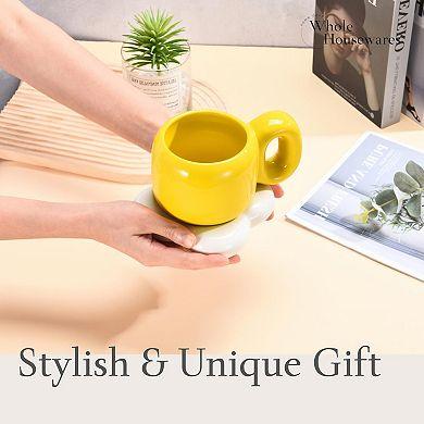 Introducing the Whole Housewares Chubby Mug, a trendy and durable ceramic addition to elevate your coffee or tea routine. With its cute, chubby shape and convenient big handle, this mug combines aesthetics and practicality to enhance your morning ritual. It's dishwasher safe for easy cleaning and comes with a matching saucer featuring a cloud-shaped bottom for a unique floating effect.