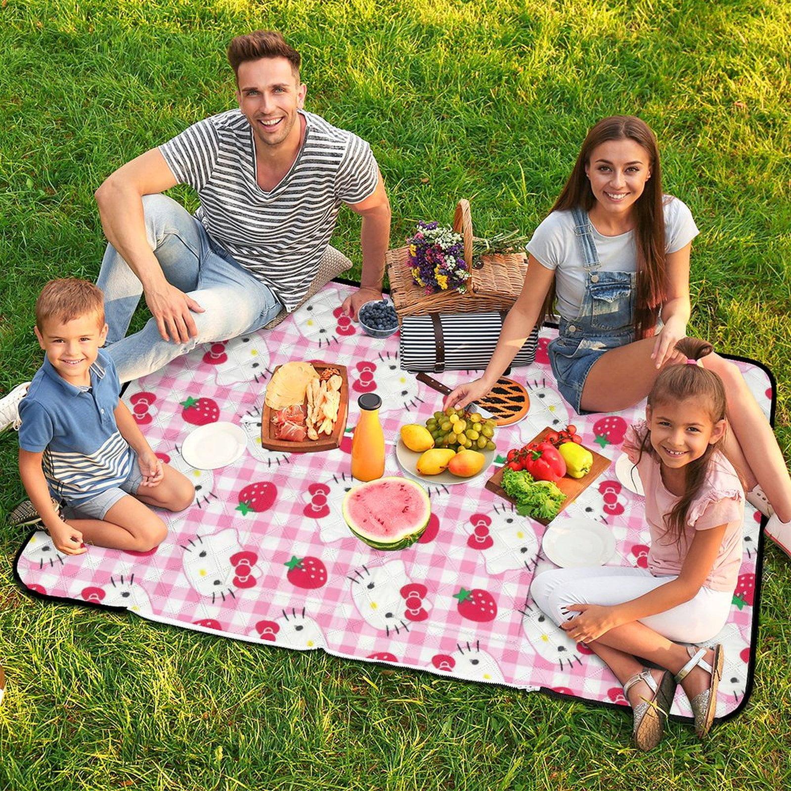 Hello Kitty Picnic Blankets Beach Blanket, 60''x40'' Large Sandproof Machine Washable Waterproof Foldable Outdoor Mat with Handle for Camping Park Travel Grass