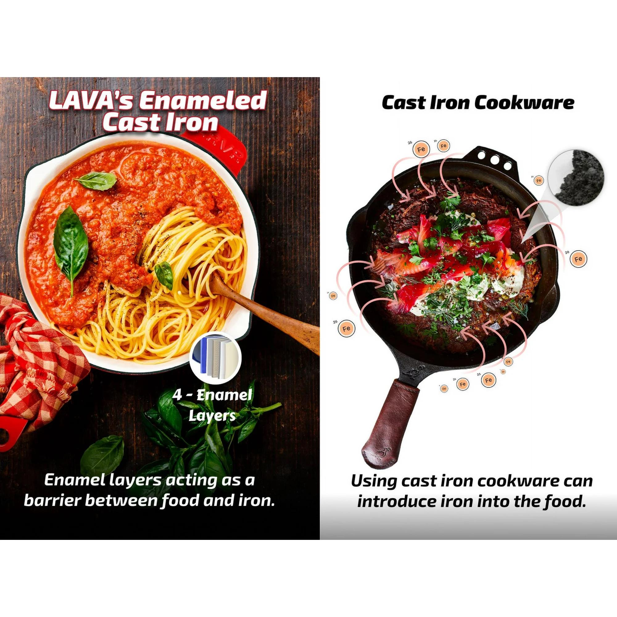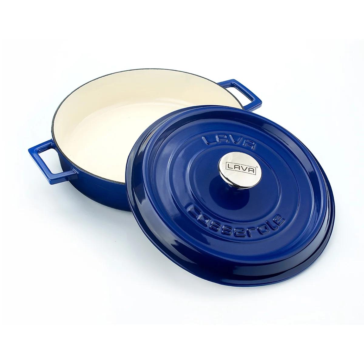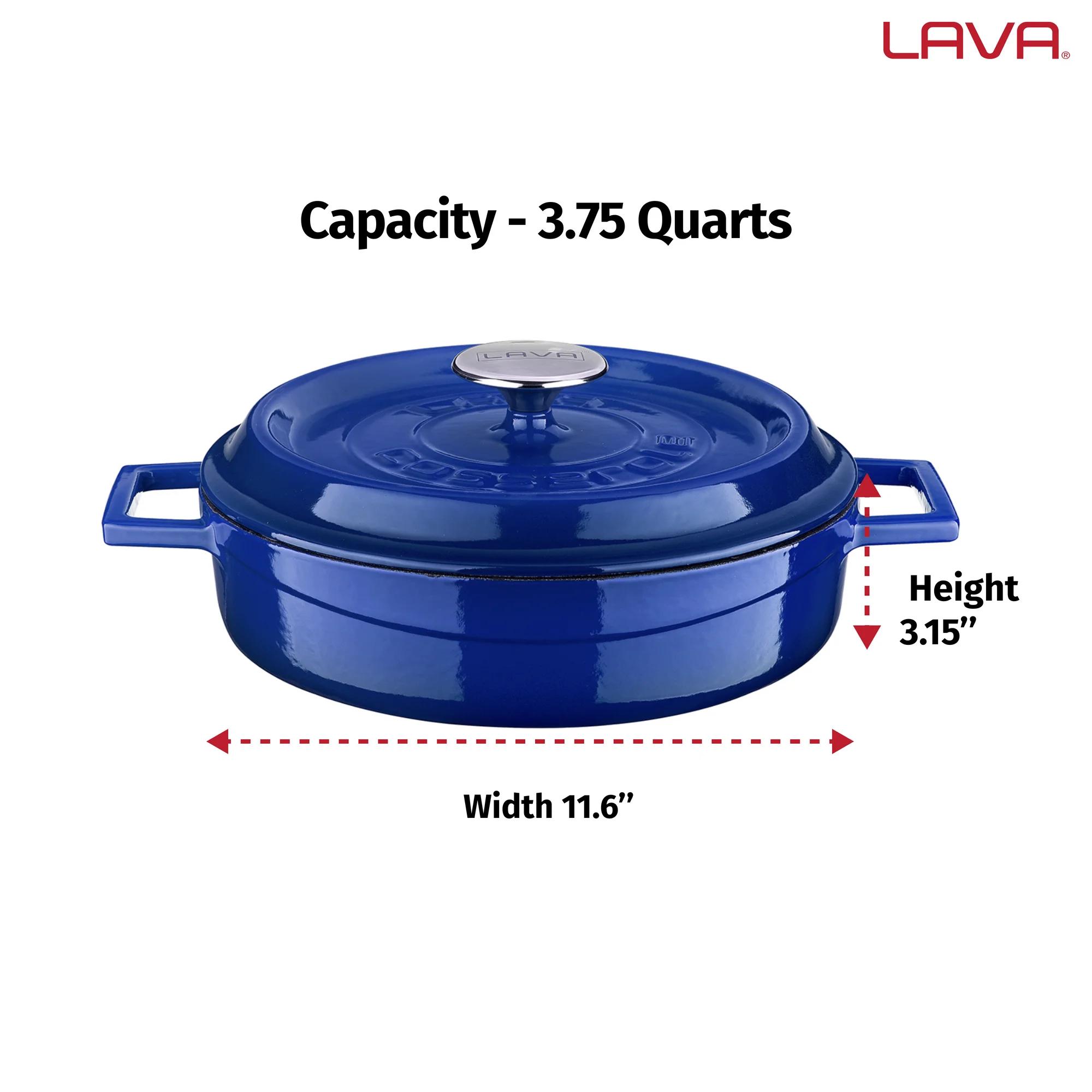 LAVA 3.7 Quart Enameled Cast Iron Braiser: Multipurpose Stylish Round Dutch Oven Pot with Glossy Sand-Colored Three Layers of Enamel Coated Interior and Trendy Lid (Blue)