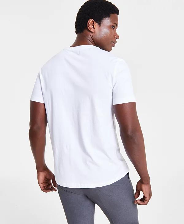 Crafted from compact cotton for a smooth hand with an extra sleek feel, this Calvin Klein T-shirt features versatile solid styling for a timeless look. Modern and street-ready, this Calvin Klein Jeans graphic tee is a perfect layer or on-trend style statement.