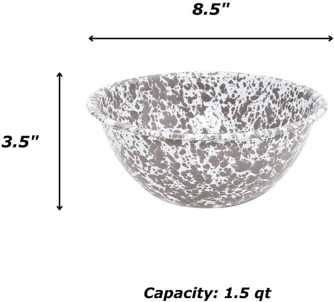 Crow Canyon Home Enamelware Serving Bowl, 1.5 quart, Blue/White Splatter (Single)