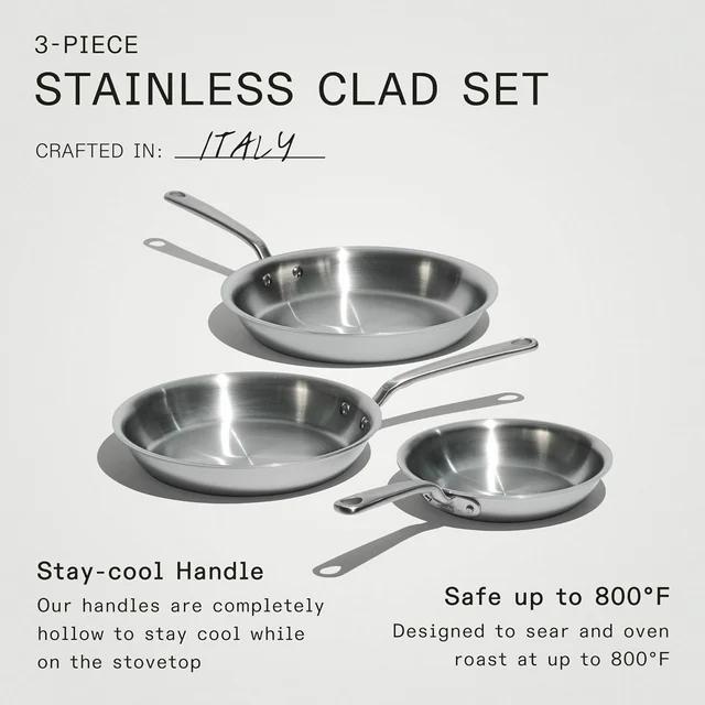 Includes: 8" Stainless Frying Pan | 10" Stainless Frying Pan | 12" Stainless Frying Pan. Essential for Every Kitchen - The Made In Stainless Clad Frying Pan is a must-have kitchen tool, offering maximum heat control, responsiveness, and versatility to elevate your cooking experience. Superior Quality - Made from 5 layers of premium metal for professional-quality heat distribution. Disclosure: We are a participant in the Amazon Services LLC Associates Program, an affiliate advertising program designed to provide a means for us to earn fees by linking to Amazon.com and Affiliate sites.
