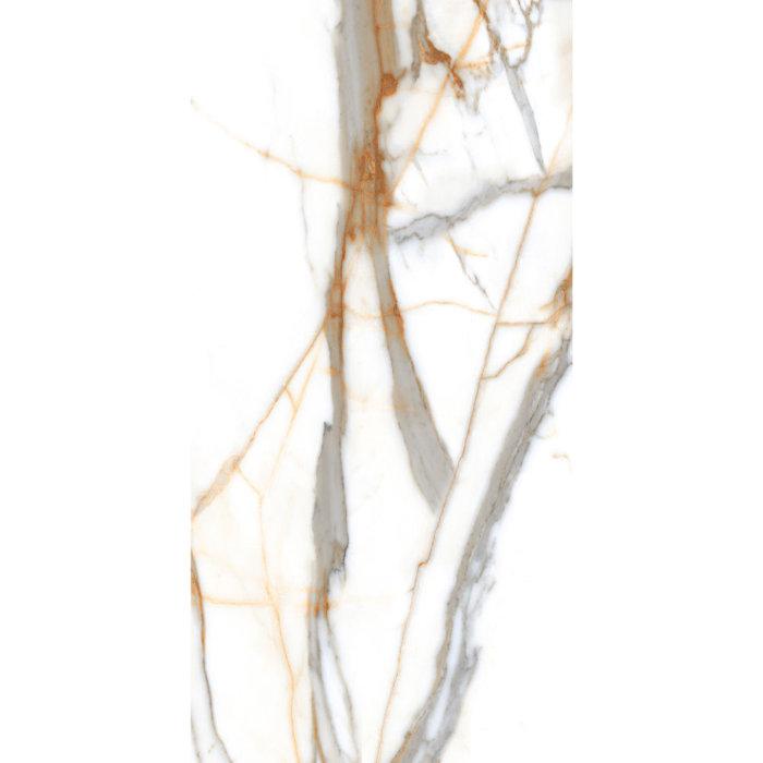 Calacatta gold white porcelain wall and floor tile offer an alternate white marble effect look for those not wanting the traditional grey veined tile. As a design color beige is often described as a relaxing color, neutral to its surroundings, combine this with the beautiful natural marble-inspired vein patterns and you get a fusion of modern color and a classic-looking floor. Marble has been the inspiration for interior floor tiles for as long as we have tiled floors, but the use of real marble can be fraught with difficulties. From the specialist sealers and cleaners required for its maintenance to the prohibitive cost of the stone and its installation, real marble is often simply not viable for most. However modern porcelain manufacturing has developed by leaps and bounds in recent years, and now with the availability of high-definition imaging technology, you can get a real marble-looking floor for a fraction of the price of the real stone. Ideal for use as a floor tile throughout the home this durable porcelain floor tile is perfect for busy living areas, hallways, and of course bathrooms and kitchens.