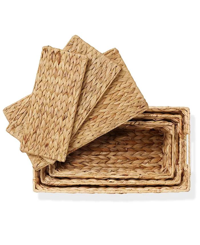 Casafield's rectangular baskets with lids are a perfect blend of form and function. These handwoven water hyacinth baskets are designed to help you declutter your living space while adding a decorative accent to your home's decor.