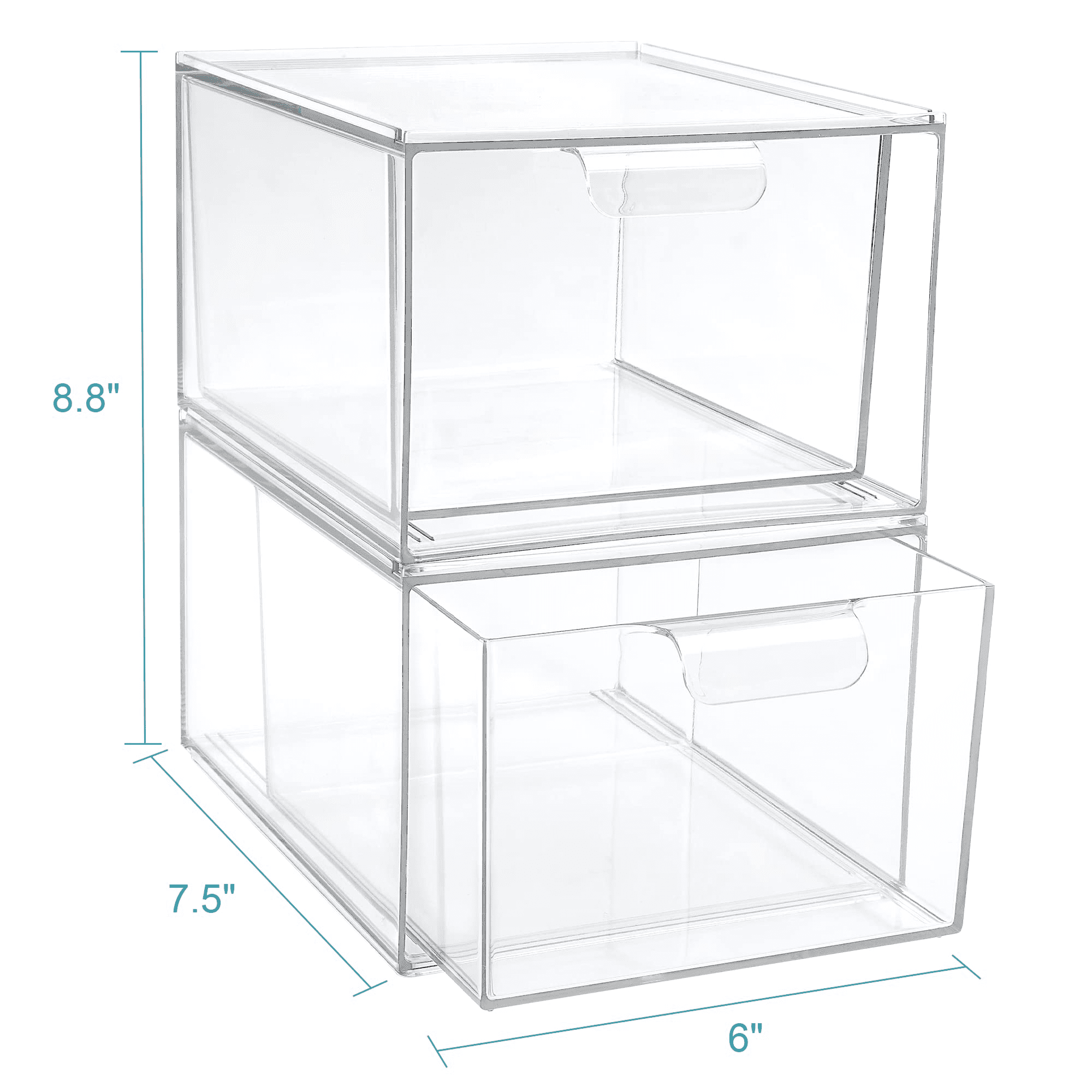 Keep Your Home Organized: Our acrylic organizer bins help you to organize your home with style. They are clear, which helps you to identify contents easily. Keep items contained, organized and dust-free and create a neat space in your bathrooms, laundry, bedrooms, offices, garages, toy rooms, craft rooms and playrooms, refrigerator, cupboards or pantry shelves.Handy Storage Drawers Set: The storage containers are designed with pull-out handles. It is convenient for you to store and take out items, providing you with easy organization and storage. Light weight and easy to transport, they are ideal storage helpers in apartments, condos, dorm rooms, RV's and campers.