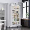 Maximize your kitchen's space with this 5-tier, floor-to-ceiling, white metal kitchen shelf, designed for vertical storage and featuring double open doors for easy access and efficient organization. Strong and durable, this unit includes lockable doors that can support up to 250KG, ensuring a secure storage solution for your microwave, bowls, and more. Enjoy the convenience of smooth mobility thanks to its alloy universal wheels with brakes, enabling 360° rotation and quiet, effortless movement around your kitchen.