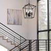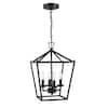 Alfa 12 in. 4-Light Geometric Cage Lantern Pendant Light with Mate Black Finish