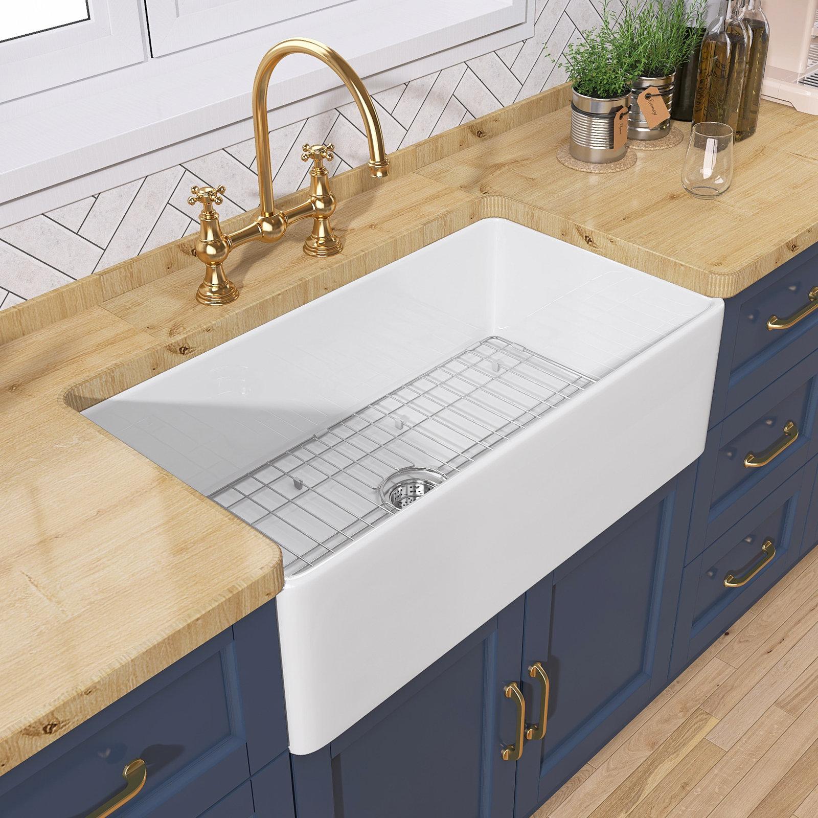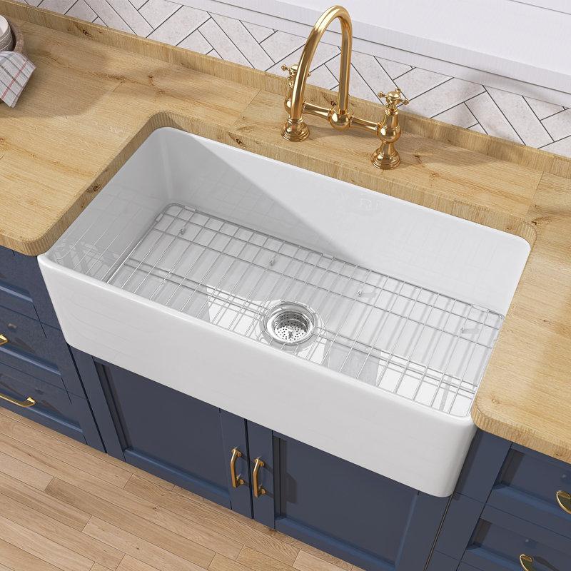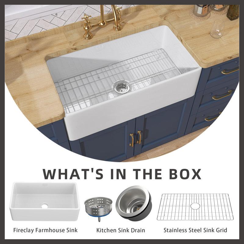 30" L x 18" W Fireclay Farmhouse Kitchen Sink with Custom Bottom Grid & Strainer Drain (Part number: 30" Farmhouse Sink)