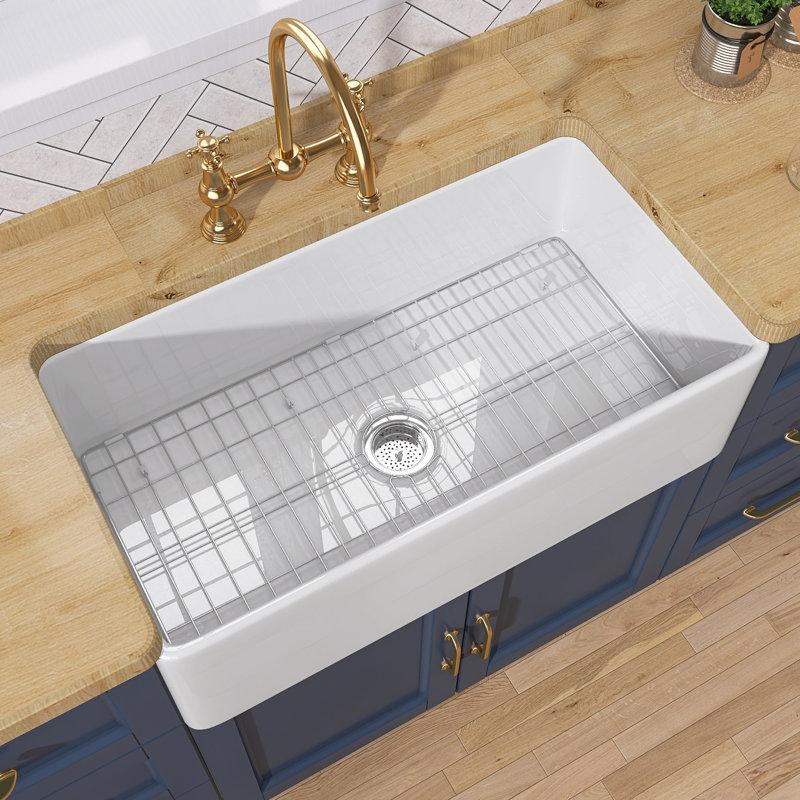 Elegant super glossy white makes this deep drop-in farm sink will be the centerpiece of any kitchen. This white kitchen sink built to last, can be durable for decades.
