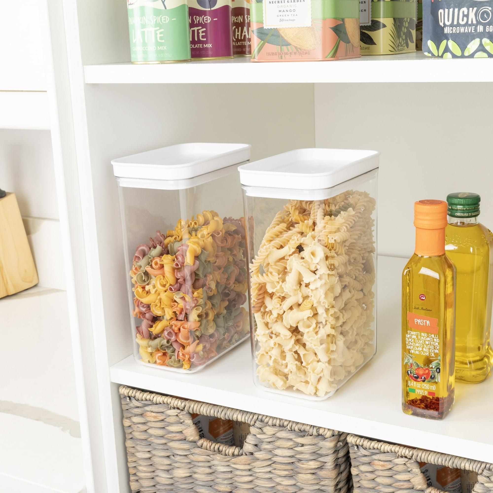 Keep your food fresh and organized in the Mainstays Food Storage Canister with airtight push-top lid. The clear design makes it easy to find what you're looking for and creates more space in any area of your Kitchen with the stackable design. Use to store food, small hardware, jewelry, and so much more.