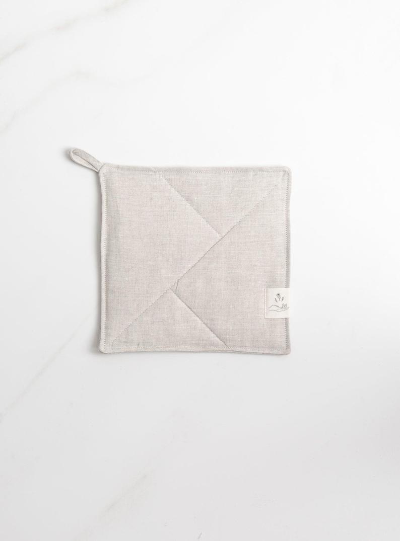 Linen pot holder handmade in Montreal, new and upgraded version of our former trivet. This simple and elegant trivet will keep your hands and table burn-free as well as being a beautiful decorating addition to your kitchen.