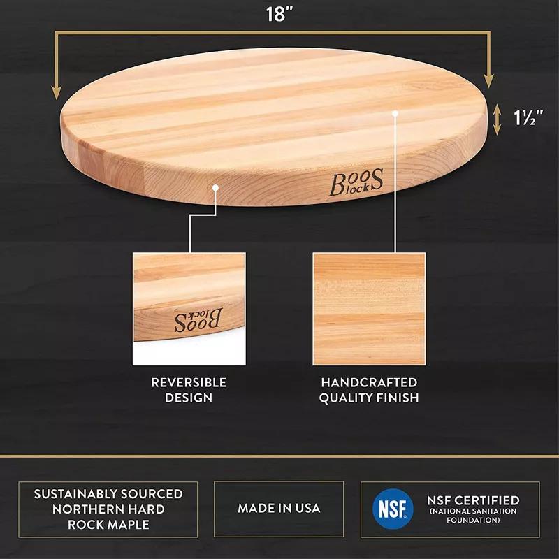 John Boos R18 R Board Wooden 1.5 Inch Thick Reversible Round Circular Carving Cutting Board