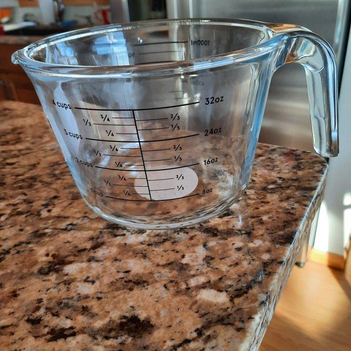 Add a must-have staple to your cooking arsenal with this 4-Cup Glass Measuring Cup from Figmint™. Made from clear, transparent glass, this measuring cup is designed with an ergonomic handle and an easy-pour spout to minimize splashing. Easy-to-read measurements in different units help you be precise when following recipes, and the cup is microwave, freezer and dishwasher safe for versatile use.