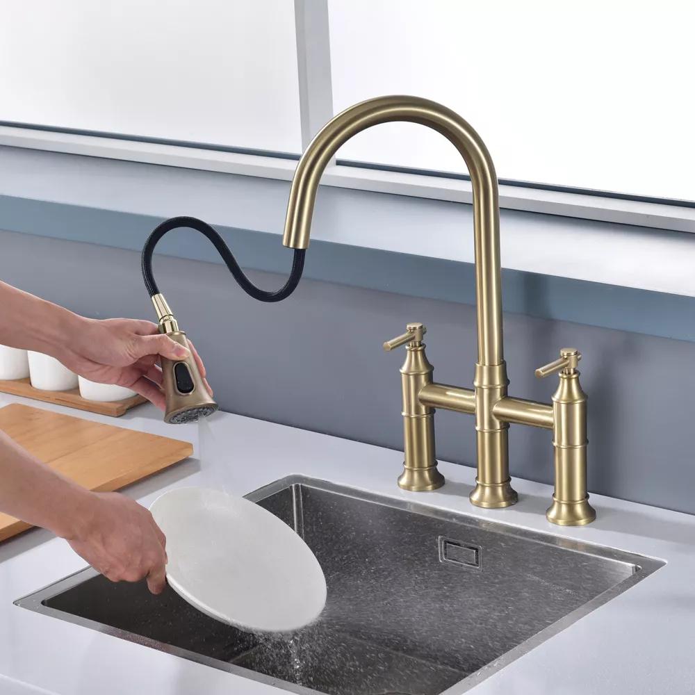 SUMERAIN 8-Inch Centerset Kitchen Bridge Faucet with Pull Down Sprayer 3 Hole, Brushed Gold