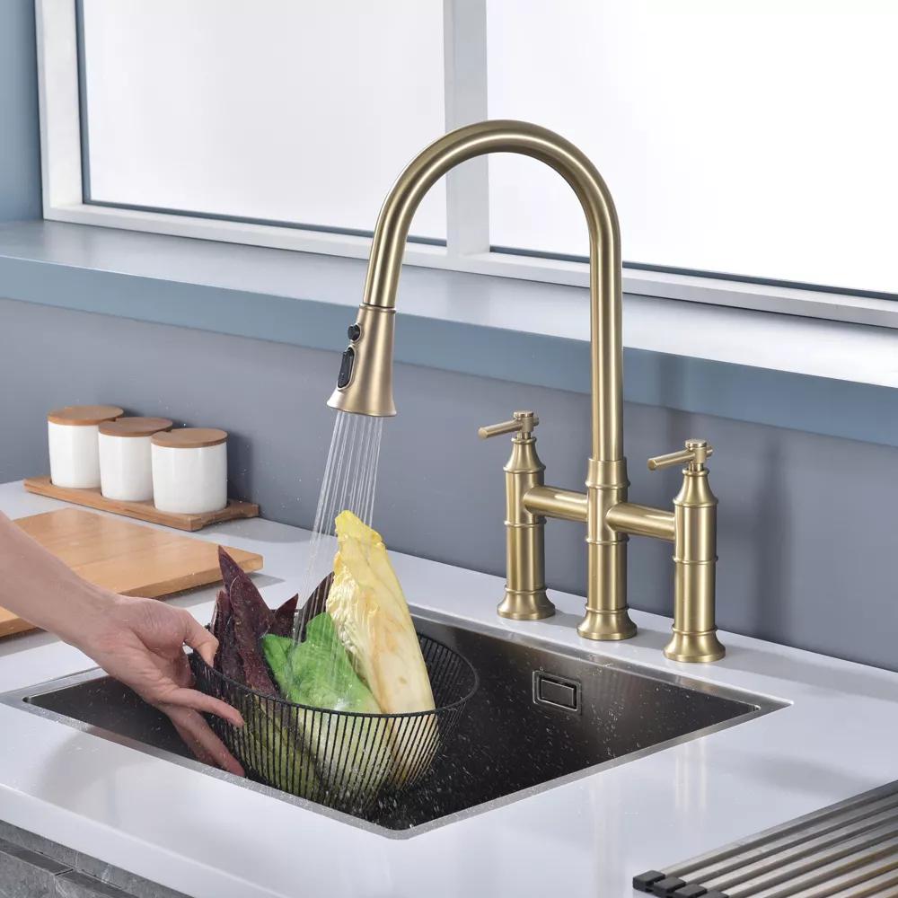 Install a convenient and useful 3 hole faucet in your kitchen with the SUMERAIN bridge faucet with pull-down spray head and lever handles! This heavy-duty faucet features a pull-down spray head spout offers an extended range of motion all around the sink. Plus, it is made with lead-free SUS304 stainless steel with a superior corrosion & rust-resistant finish that is easy to clean. This bridge kitchen faucet meets ADA compliance. This faucet comes with 3 different spray settings to help meet your cleaning needs - stream, spray, and powerful blade. Product listed in the California CEC modernized appliance efficiency database system and ECPA Department of Energy (DOE) qualified list. This kitchen faucet has ICC-ES PMG certification and is compliant with standard: ASME A112.18.1/CSA B125.1-2018, plumbing supply fittings(the same standard as cUPC certification). Product is Lead Free compliant with standard: NSF/ANSI/CAN 372-2022 drinking water system components - lead content. Certified Safe: Our faucet is certified under NSF/ANSI/CAN 61-2022 drinking water system components - health effects.