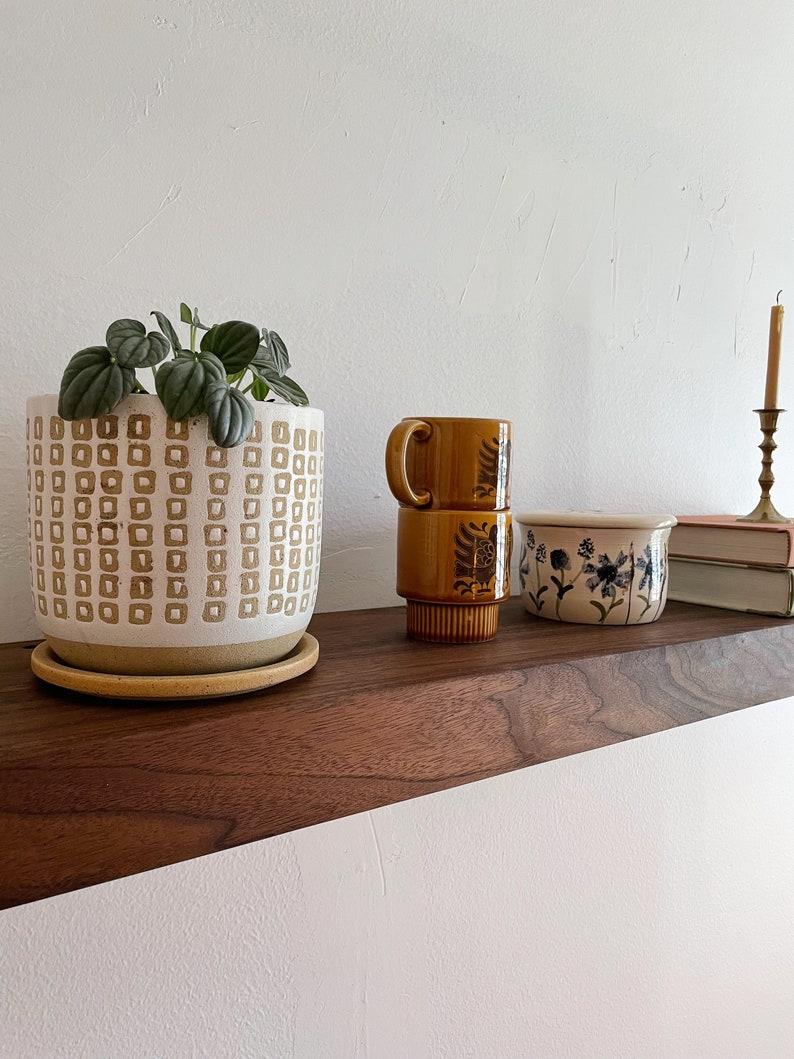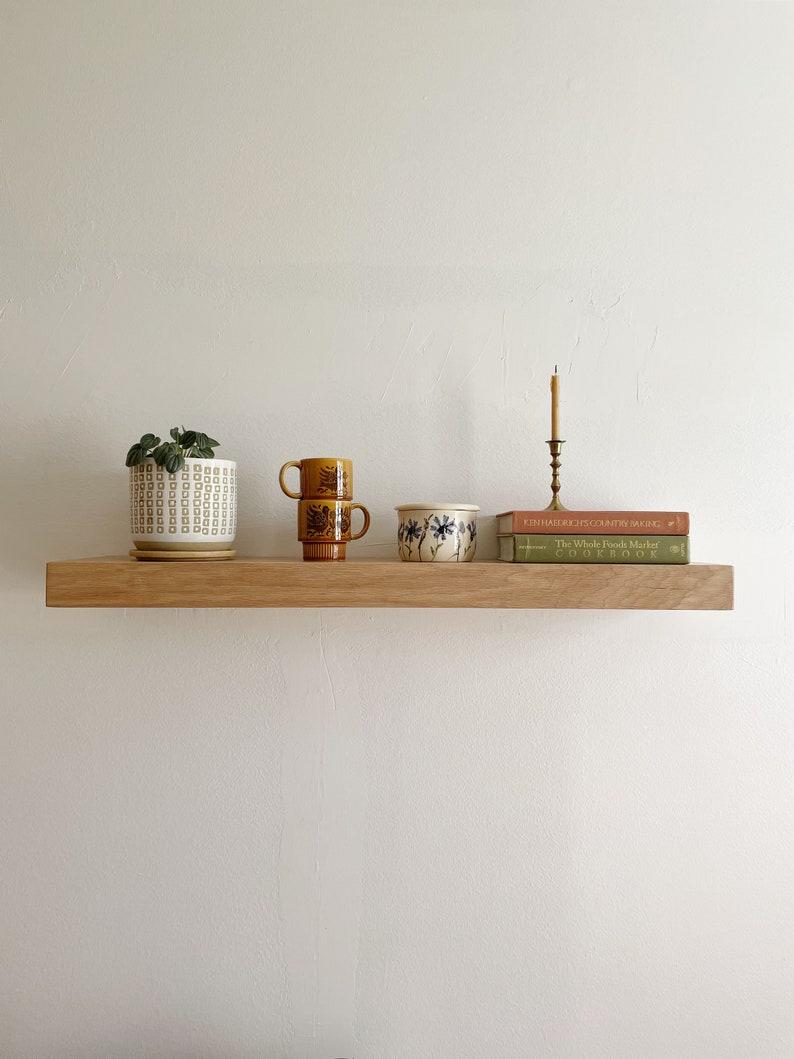Walnut Floating Shelf for Modern Home, Wall Shelf with Hidden Bracket, Wood Shelf Open Shelving for Kitchen