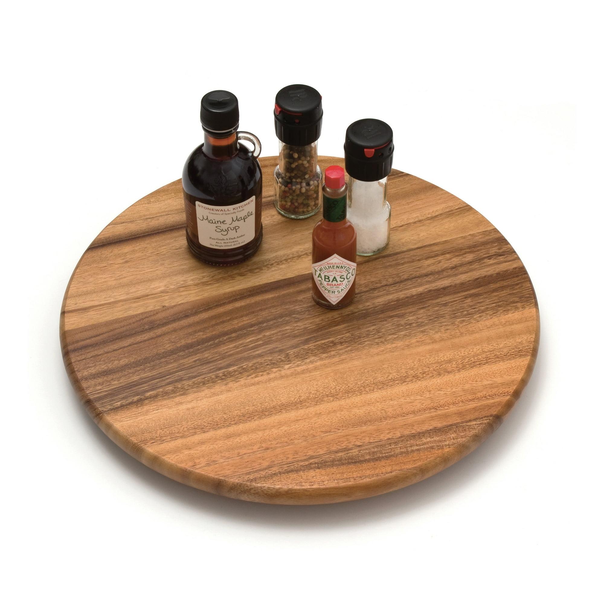 From serving up tapas to setting out a pitcher of freshly squeezed lemonade, this Acacia Lazy Susan brings convenience and functionality to tables, counters, pantries, and beyond. The high variation in the grain and knot pattern of acacia allows you to pair each piece with both light and dark colors inside any room. This Acacia Lazy Susan is the ideal choice for a centerpiece on your table or a focal point on your counter-top. Paired with a smooth gliding Lazy Susan turntable for easy turning, this beautiful wooden Lazy Susan makes sharing a meal or drinks both easy and elegant.