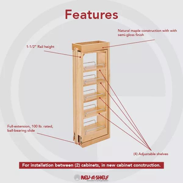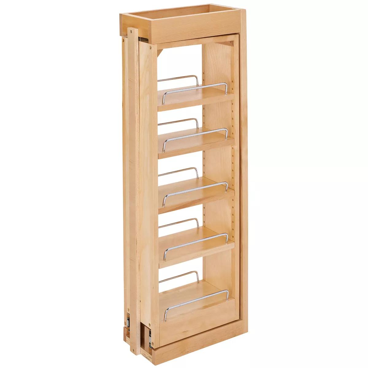 Your seasonings and canned goods will always be within reach with the Rev-A-Shelf 6-Inch Wood Wall Filler Pull-Out Cabinet Organizer. This handy organizer features 5 levels of shelving for maximum storage space and easy access.