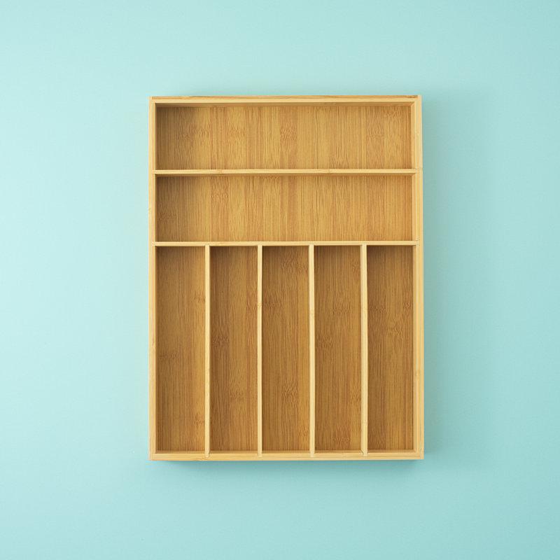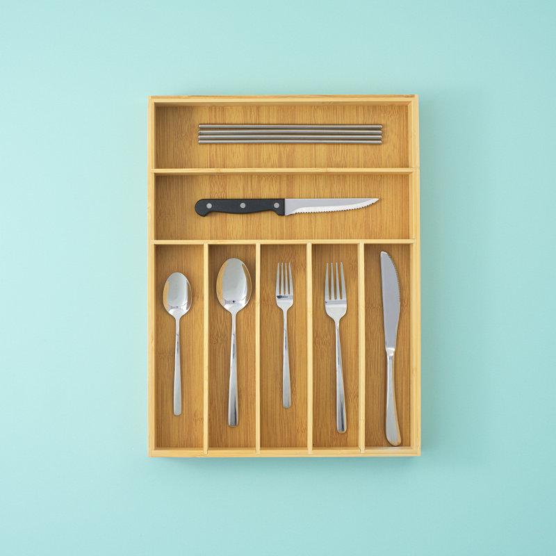 JoyJolt Bamboo 7 Slot Flatware Drawer Organizer for Kitchen Utensils