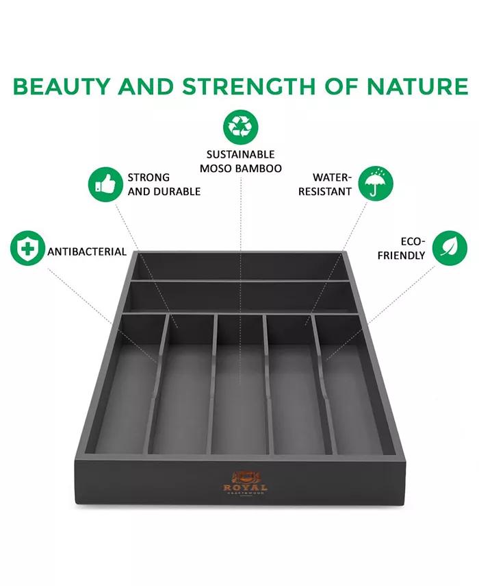 A durable bamboo kitchen drawer organizer tray royal craft wood utensil holder makes everything look perfect. Enjoy a clean room without any mess now. The bamboo drawer organizer features 7 slots, deep compartments, and deep grooved dividers. Key benefits utensil holder, durable utensil cutlery tray 7 compartments of various sizes, bamboo drawer organizer for kitchen utensils with reinforced base, easy maintenance, stylish design for any room.