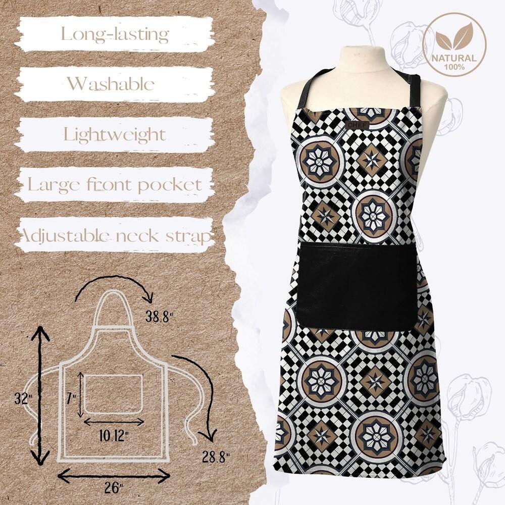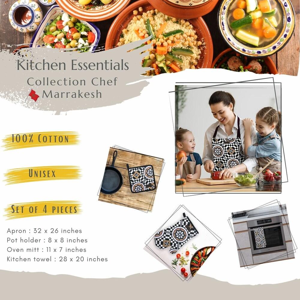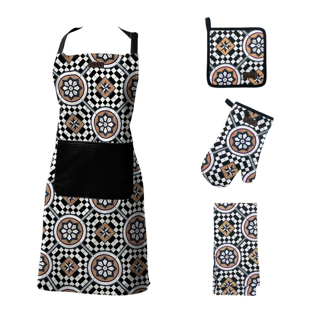 4-Piece Mosaic Kitchen Set: Black Apron Oven Mitt Towel and Pot Holder - Set of 4