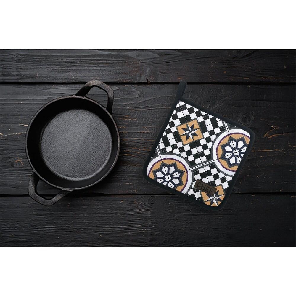 Mosaic Inspiration: Immerse yourself in the allure of this elegant kitchen linen set, featuring a black tile-inspired pattern that infuses sophistication into any kitchen, making every meal a luxurious affair