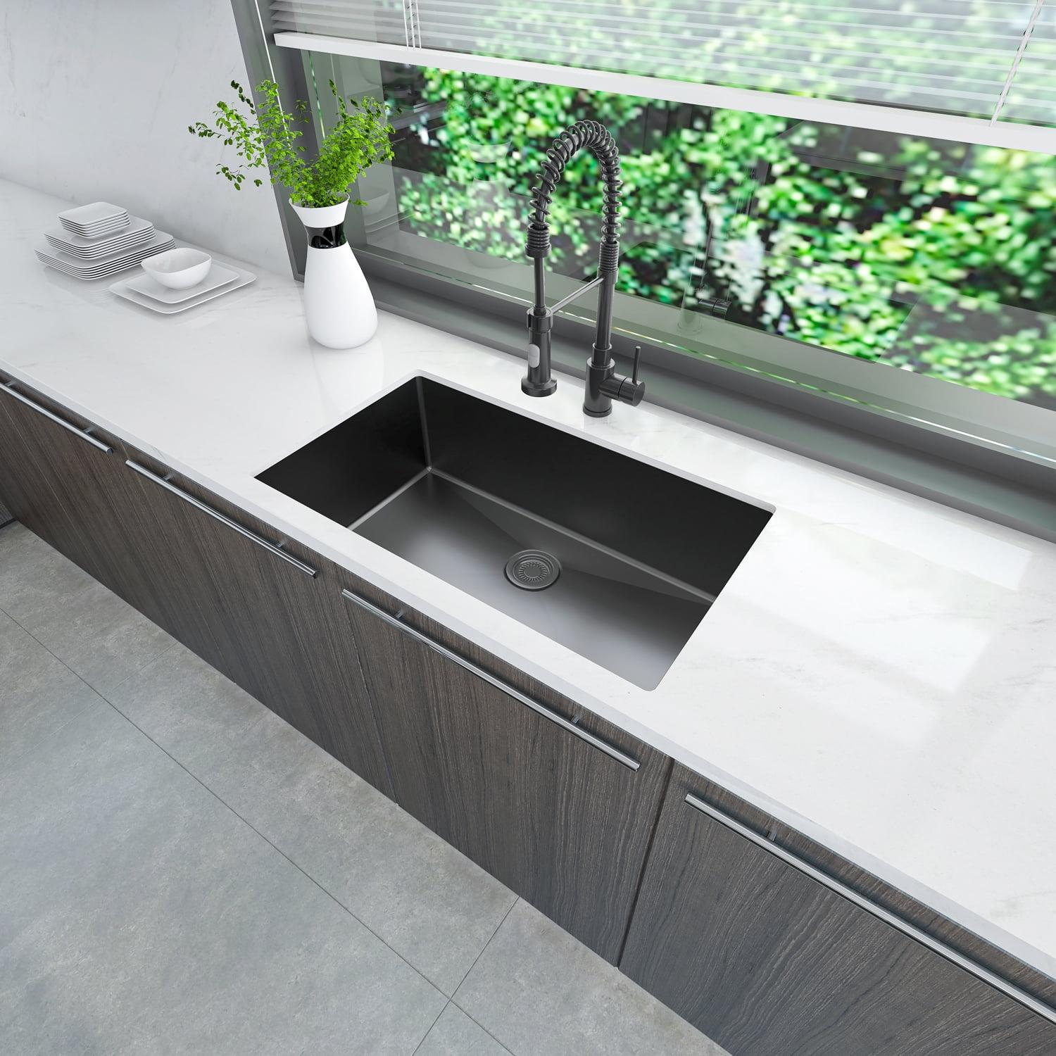 Sinber 32” Undermount 18 Gauge Single Bowl Black Finish 304 Stainless Steel Kitchen Sink
